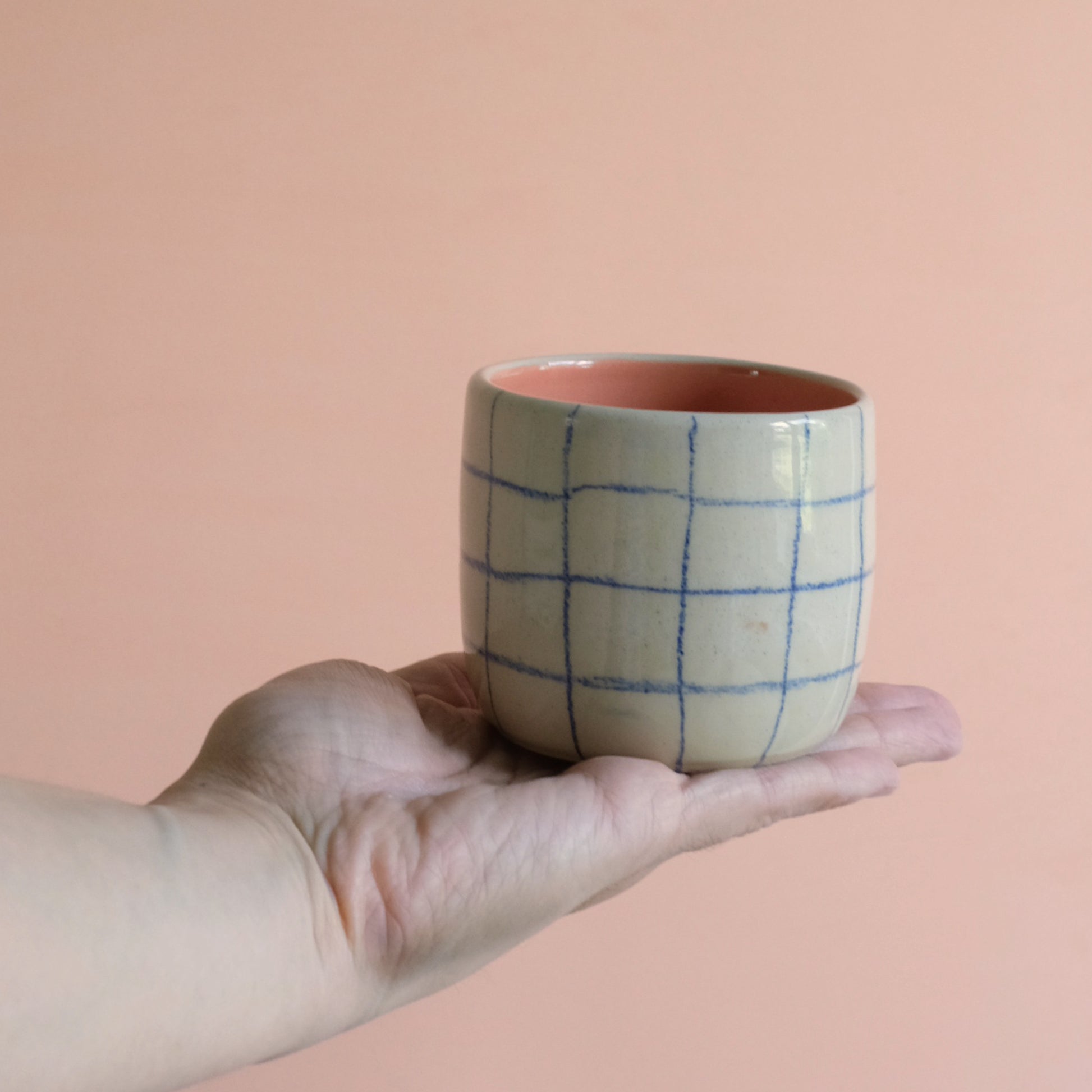 Hinweis: Da jeder Becher handgefertigt ist, können sowohl das Karo-Muster als auch die Größe leicht variieren - das macht jedes Stück zu einem authentischen Einzelstück.