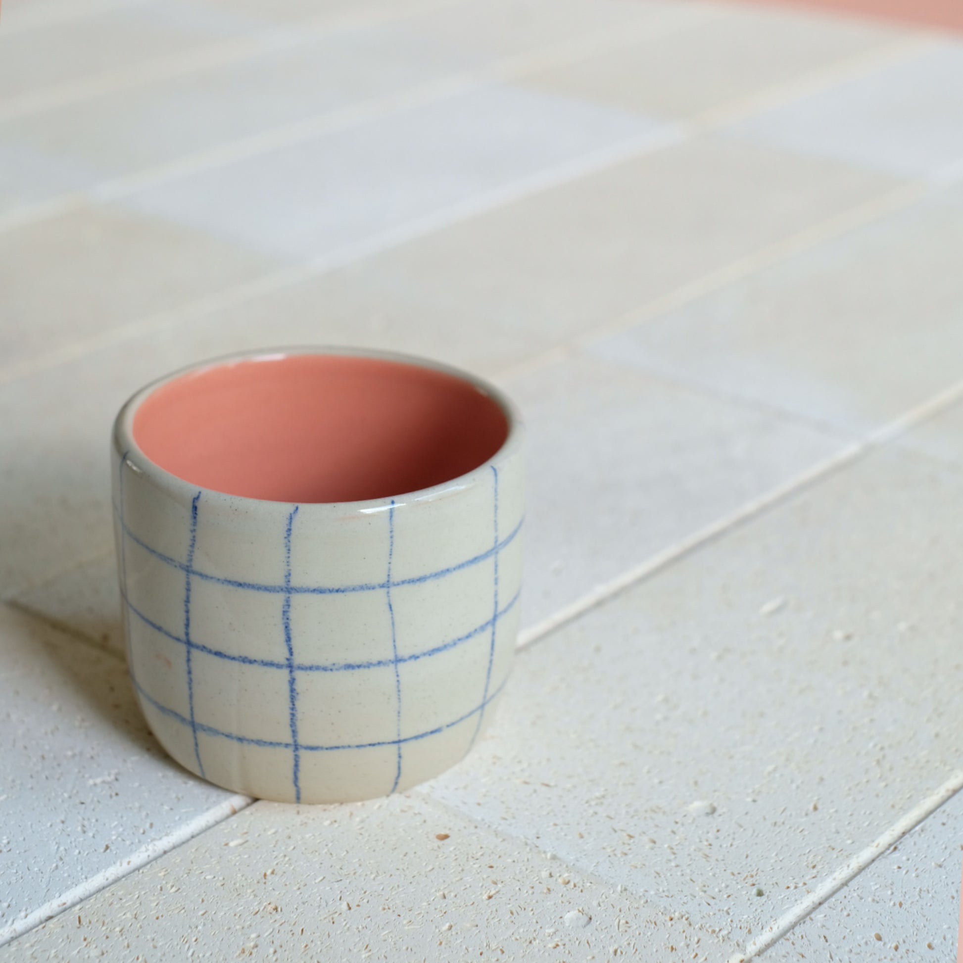 Handgefertigter Keramikbecher mit charmantem Karo-Muster